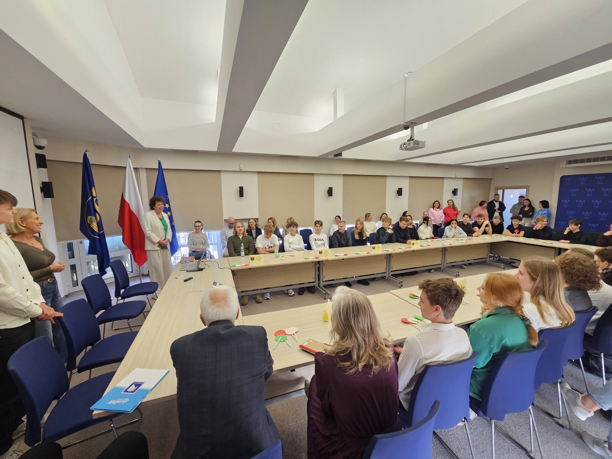 Po debacie uczestnicy – zarówno goście ze Szwecji, jak i uczniowie z Izabelina – wzięli udział w podchodach z zadaniami na trasie z Urzędu Gminy do szkoły. Była to okazja do współpracy, integracji i aktywnego spędzenia czasu.