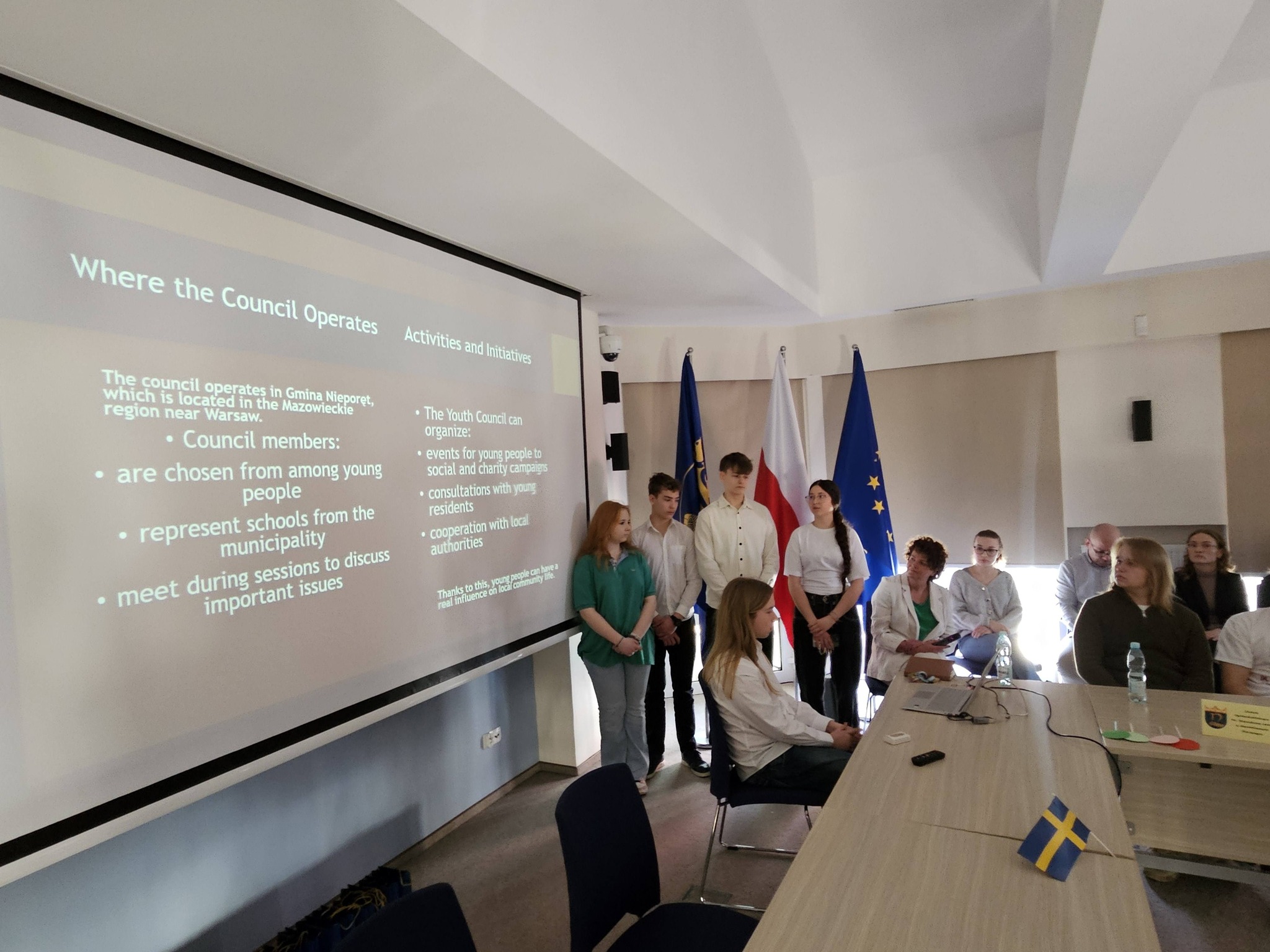 Szwedzcy uczniowie mieszkają u rodzin swoich polskich rówieśników, co pozwala im lepiej poznać codzienne życie, kulturę i tradycje w Polsce. Taka forma pobytu sprzyja integracji oraz nawiązywaniu trwałych znajomości. Jednym z ważniejszych punktów programu wymiany międzynarodowej była debata w Urzędzie Gminy Nieporęt pt. „Voices of Tomorrow – a Debate on Learning, Technology and Life Choices”, która odbyła się 17 marca. Uczniowie mieli okazję wymienić się opiniami na temat edukacji, roli technologii oraz wyborów, przed którymi stoi młode pokolenie. W debacie uczestniczyli także samorządowcy: Radny Powiatu Legionowskiego Andrzej Olechowski, który w krótkiej prezentacji przedstawił młodzieży historyczne i międzykulturowe relacje jakie łączą nasze dwa kraje. Były nawiązania do dynastii Wazów, a także gwiazd futbolu: Roberta Lewandowskiego i Zlatana Ibrahimović’a. Byli również przedstawiciele Młodzieżowej Rady Gminy Nieporęt.