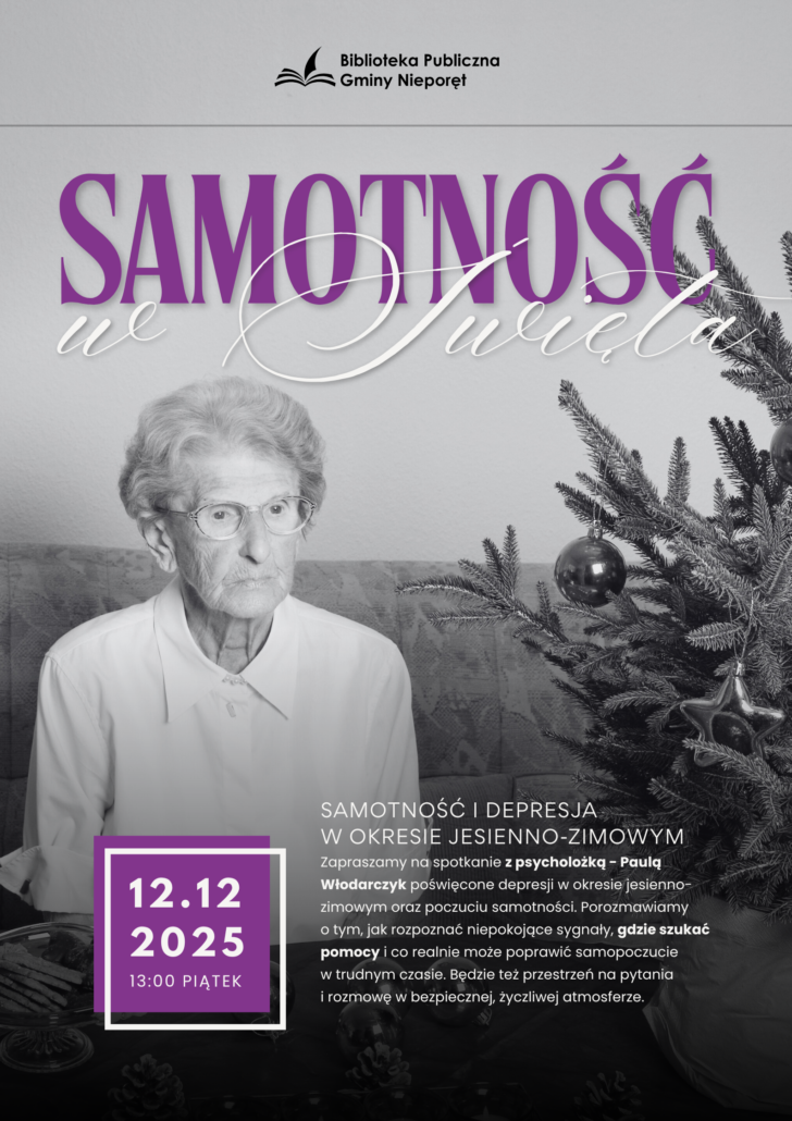 Spotkanie w Bibliotece Publicznej Gminy Nieporęt z psycholożką na temat samotności i depresji w okresie jesienno-zimowym.