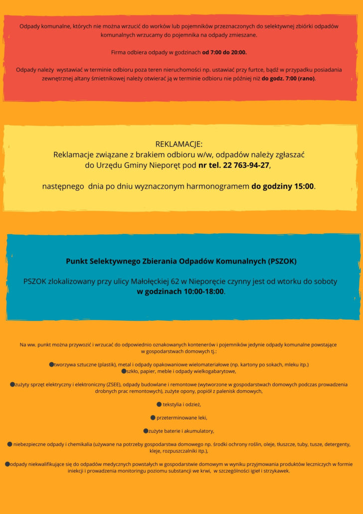 Harmonogramy odbioru odpadów: Harmonogram odbioru odpadów na 2026 Harmonogram odbioru odpadów na 2025 WAŻNE INFORMACJE – PRZECZYTAJ KONIECZNIE